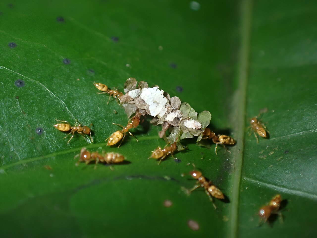 Myrmelachista ants, which excavate nesting cavities in living tree stems, keep understory leaves free of debris and pathogens. Credit: Rodolfo Probst, University of Utah