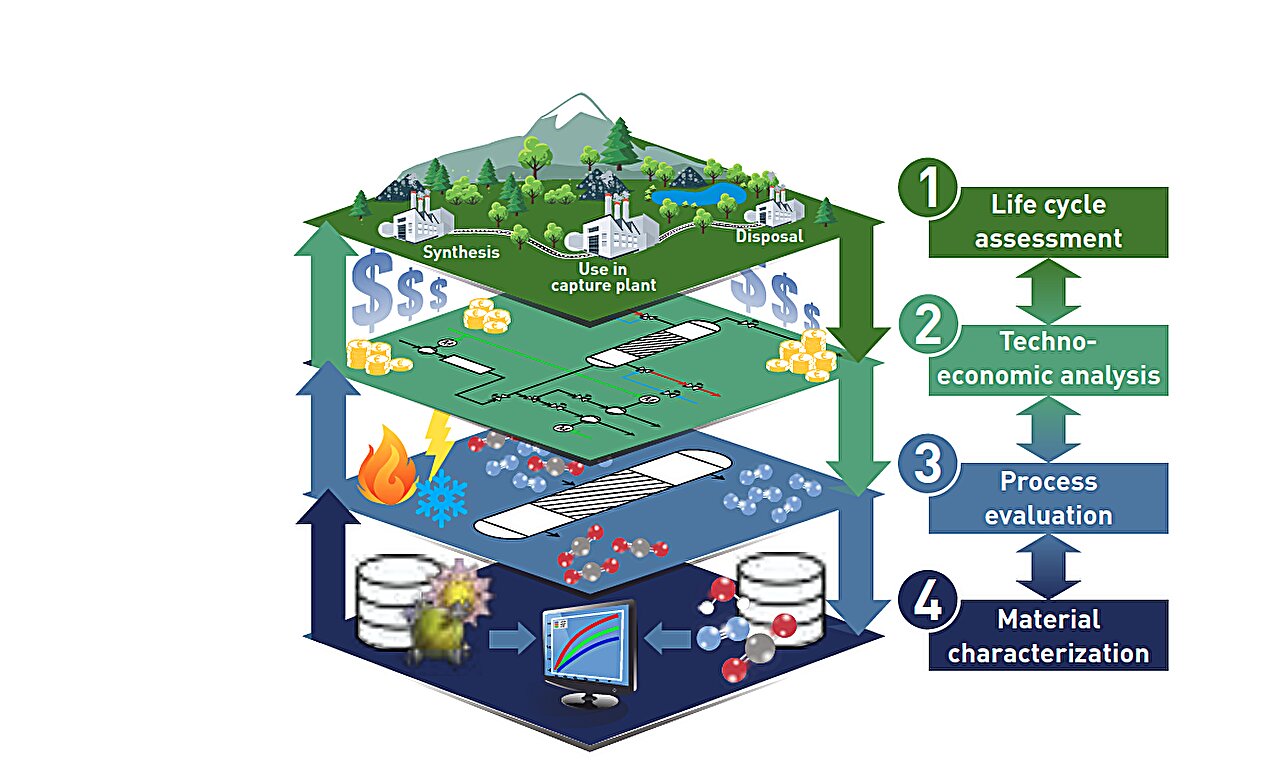The platform integrates density functional theory (DFT) and molecular simulation to predict material properties needed for process design. The team tested this approach on a CO2 capture plant looking at the indirect emissions over 30 years of the plant's operation, and coupled this with a techno-economic assessment, which evaluated the cost of the process.