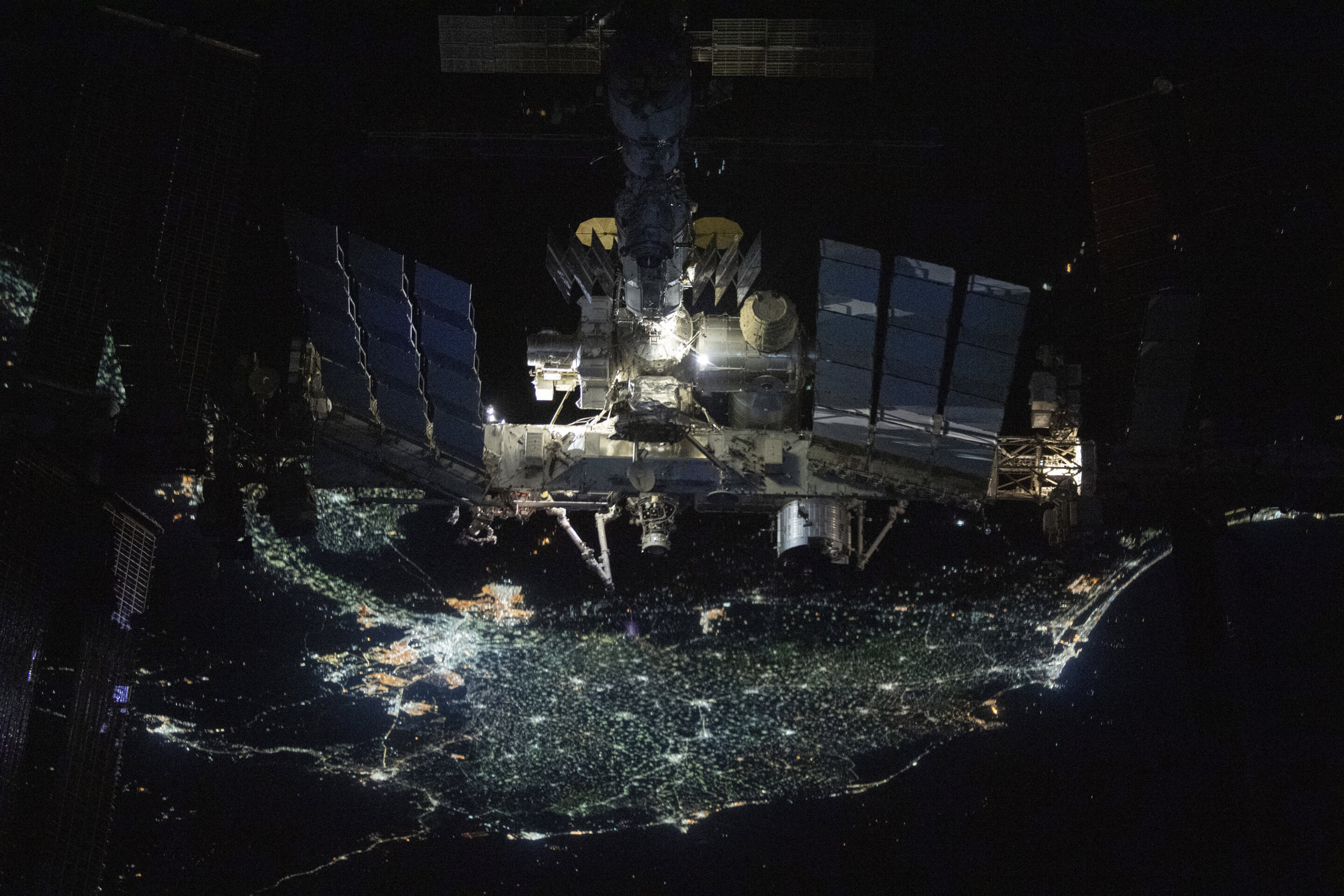 This photo provided by NASA, taken from the SpaceX Crew Dragon Endeavour, shows the International Space Station, Nov. 8, 2021, flying more than 250 miles above the Nile Delta in Egypt. NASA and SpaceX discussed plans on Wednesday, July 17, 2024, to shove the International Space Station out of orbit and steer it toward a watery grave in the next decade. Credit: NASA via AP