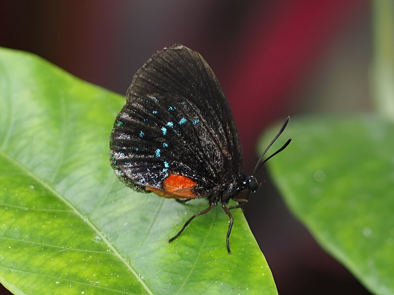 Eumaeus atala. Credit: Wikimedia Commons Nosferattus Creative Commons CC0 1.0 Universal Public Domain Dedication.