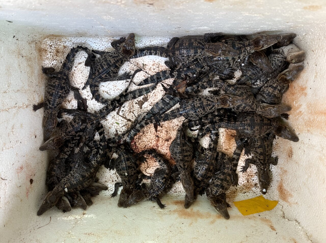 Their survival is threatened by poachers who supply eggs and adult reptiles to crocodile farms around the region, where their skins are turned into luxury belts, shoes and handbags.