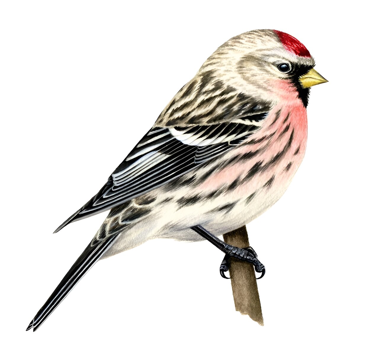 An illustration of a common redpoll. Credit: Liz Clayton Fuller